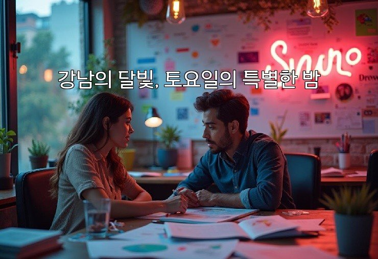 강남의 달빛, 토요일의 특별한 밤서울의 강남은 언제나 화려하고 역동적인 도시입니다. 특히 토요일 밤은 그 어느 때보다 특별한 분위기를 자아냅니다. 이곳은 다양한 문화와 오락, 미식이 어우러져 많은 이들이 찾는 명